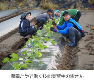 「私の農園には国際協力したいというメンバーが日本全国からきています。福井は農業者の平均年齢70歳だが、私の農園は日本人スタッフも20代、30代の若者が来てくれます。これは福井の中ではかなり珍しいことです。国際協力がしたい若者が日本全国から農業の場に来るのです。私の農園のスタッフは全員県外の方です。東京からも2名来ています。」