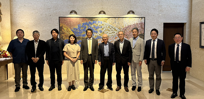 | 左から加藤軽金属工業㈱ 加藤社長、双日ライフワン㈱梅田社長、山口貴美雄 常務理事 藤島安之 理事長、株式会社ナーシング鈴木社長グエン・バン・ハオ氏、並木幸久教授 顧問 |