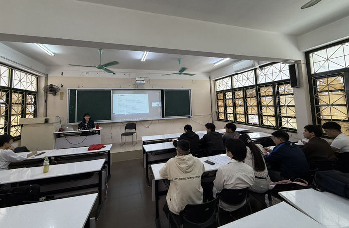 3月17日・18日の2日間にわたり、HuReDee正会員のハタコンサルタント社がハノイ交通運輸大学HuReDeeクラス6期生(UTC6)を対象に日本における土木・建築業に関する特別講座を開設し、土木・建築専攻学生9名が受講した。オンラインで業界に関する専門用語・基本スキル等の説明に加え、工事現場での実践等について講習が行われた。当日は、ハタコンサルタント社伊藤氏が講師としてオンラインで説明。ベトナム側ではハノイ交通運輸大学の教室にて、事前にベトナム語に翻訳したテキスト、及び、HuReDeeパートナーであるドンドー日本語学校手配の通訳を通じて2日間の講義が行われた。